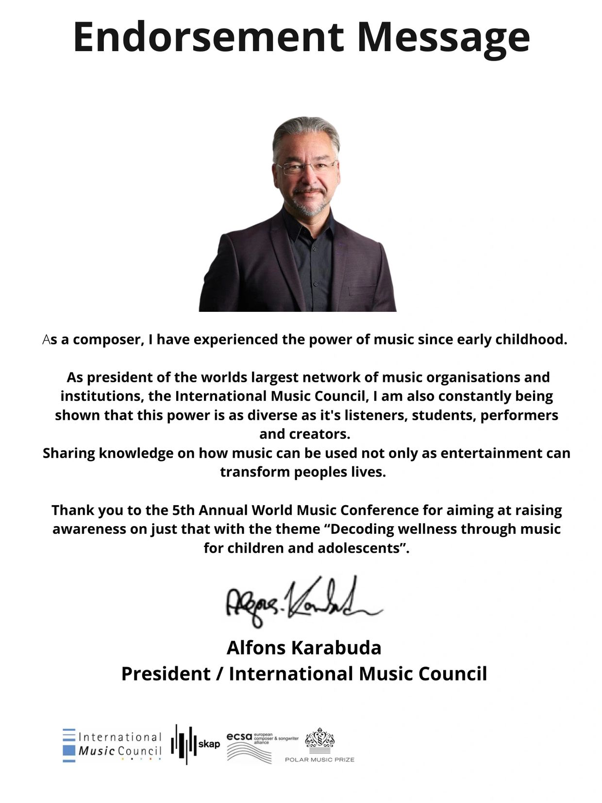 "The UK National Commission for UNESCO is delighted to support this year’s World Music Conference and its important mission to promote the positive impact of music on the lives of young people. We warmly commend all the participants in building conversations about the influence of music on mental health and its powerful potential to communicate these ideas."
